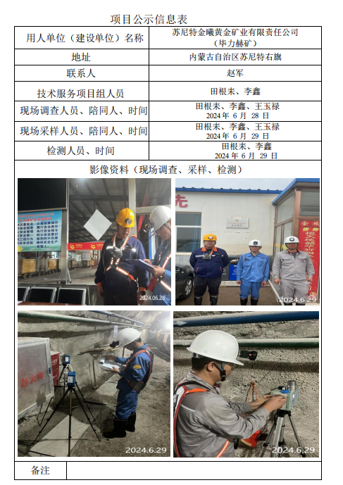 蘇尼特金曦黃金礦業(yè)有限責(zé)任公司(畢力赫礦)職業(yè)病危害因素定期檢測
