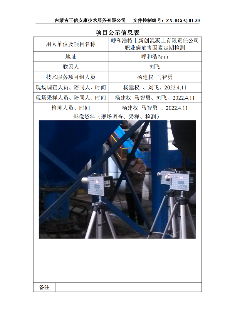 2022年5月職業(yè)衛(wèi)生檢測評價項目信息公開