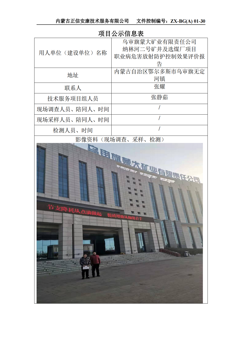 烏審旗蒙大礦業(yè)有限責(zé)任公司納林河二號(hào)礦井及選煤廠項(xiàng)目職業(yè)病危害放射防護(hù)設(shè)施效果評價(jià)