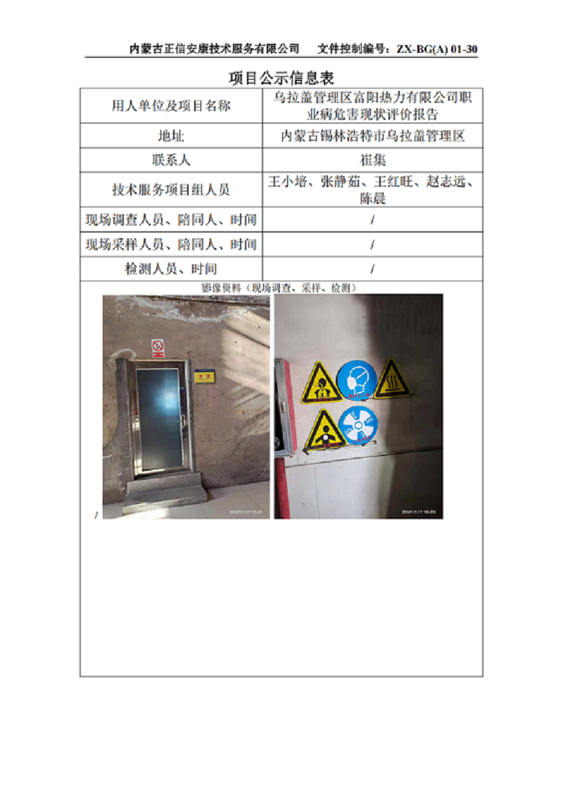 烏拉蓋管理區(qū)富陽熱力有限公司職業(yè)病危害現(xiàn)狀評(píng)價(jià)