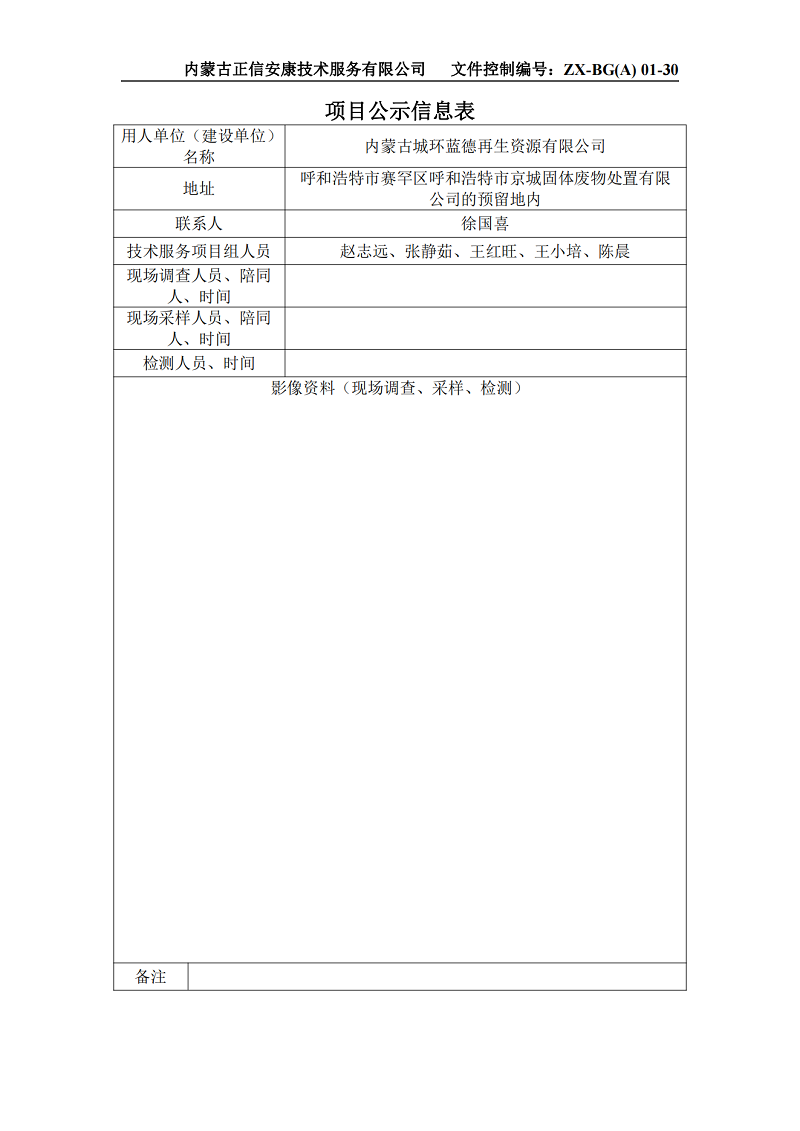 呼和浩特市餐廚垃圾處理工程項(xiàng)目職業(yè)病危害預(yù)評價(jià)報(bào)告項(xiàng)目公示信息表