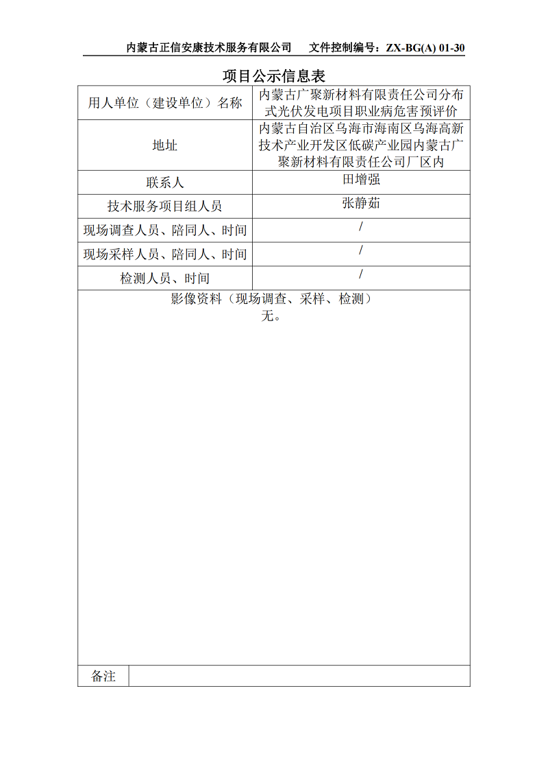 內(nèi)蒙古廣聚新材料有限責(zé)任公司分布式光伏發(fā)電項(xiàng)目職業(yè)病危害預(yù)評(píng)價(jià)項(xiàng)目信息公示