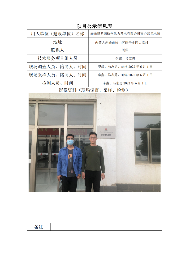 赤峰龍?jiān)此芍蒿L(fēng)力發(fā)電有限公司齊心營風(fēng)電場(chǎng)項(xiàng)目公示