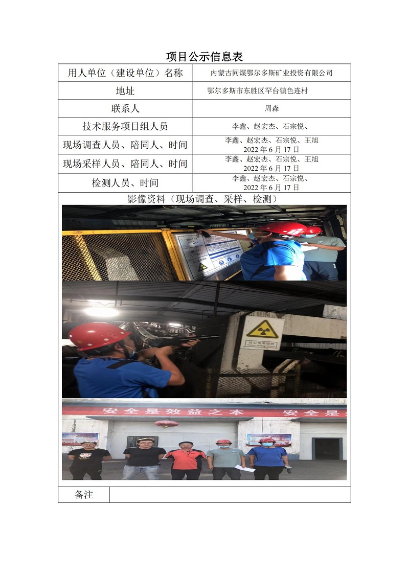 內(nèi)蒙古同煤鄂爾多斯礦業(yè)投資有限公司放射定期檢測