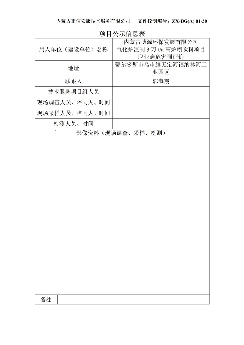 博源環(huán)保氣化爐渣預評項目公示信息表