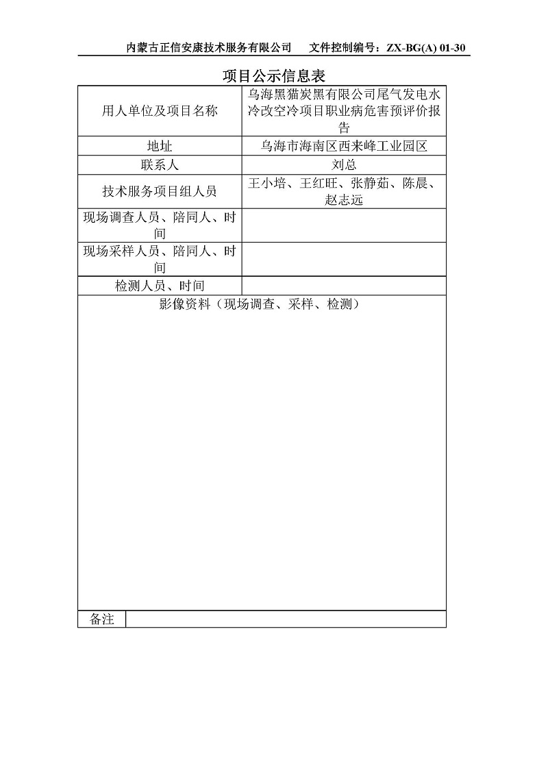 烏海黑貓?zhí)亢谟邢薰疚矚獍l(fā)電水冷改空冷項(xiàng)目職業(yè)病危害預(yù)評價(jià)
