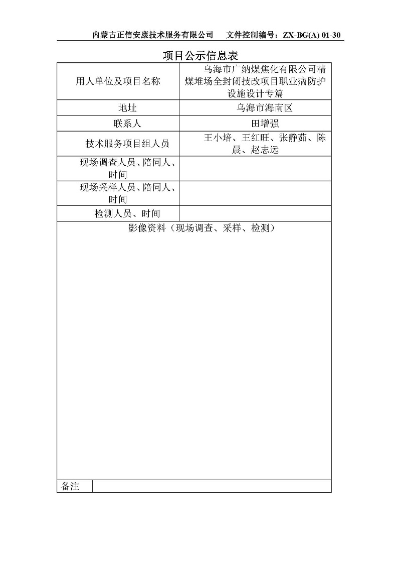 烏海市廣納煤焦化有限公司精煤堆場全封閉技改項目職業(yè)病防護設施設計專篇
