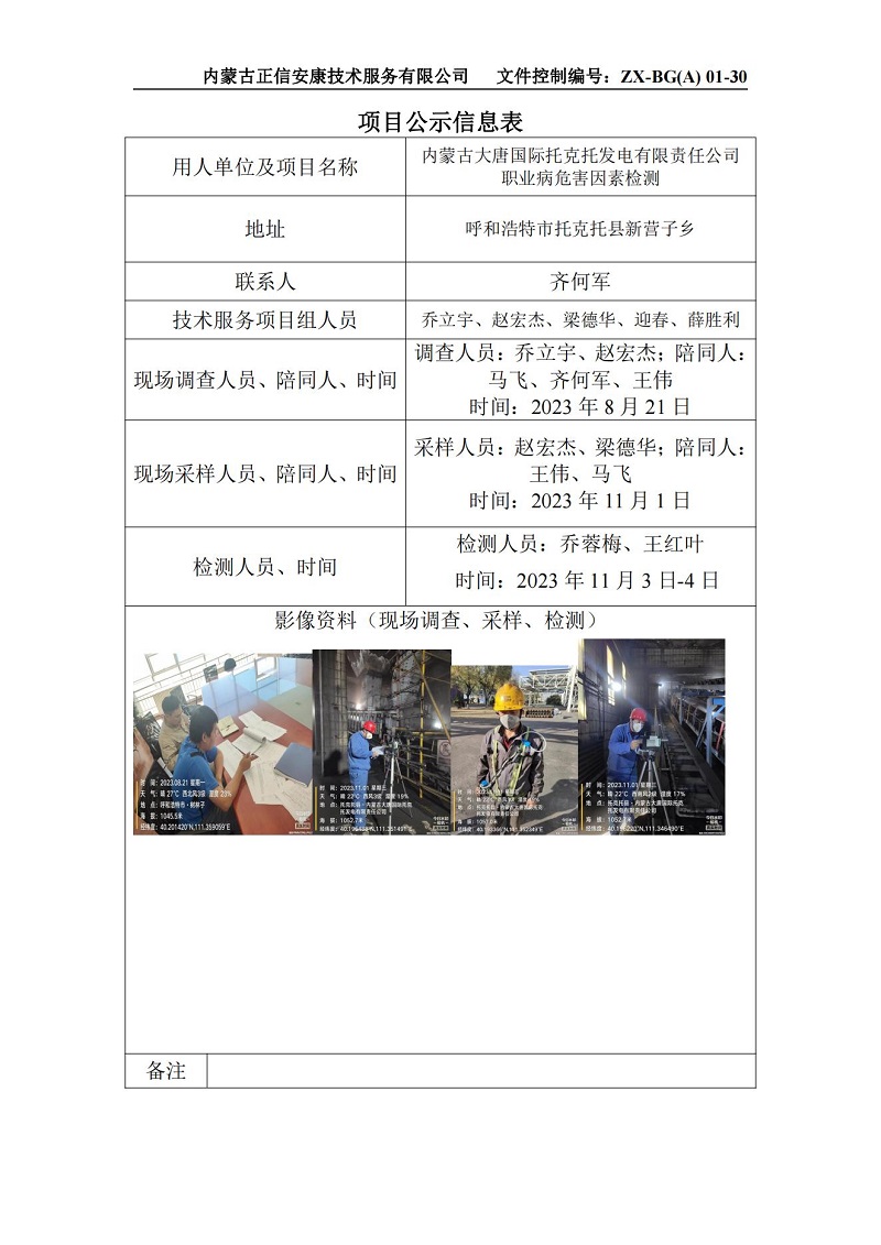 內(nèi)蒙古大唐國際托克托發(fā)電有限責(zé)任公司職業(yè)病危害因素檢測項目公示信息表(1)_