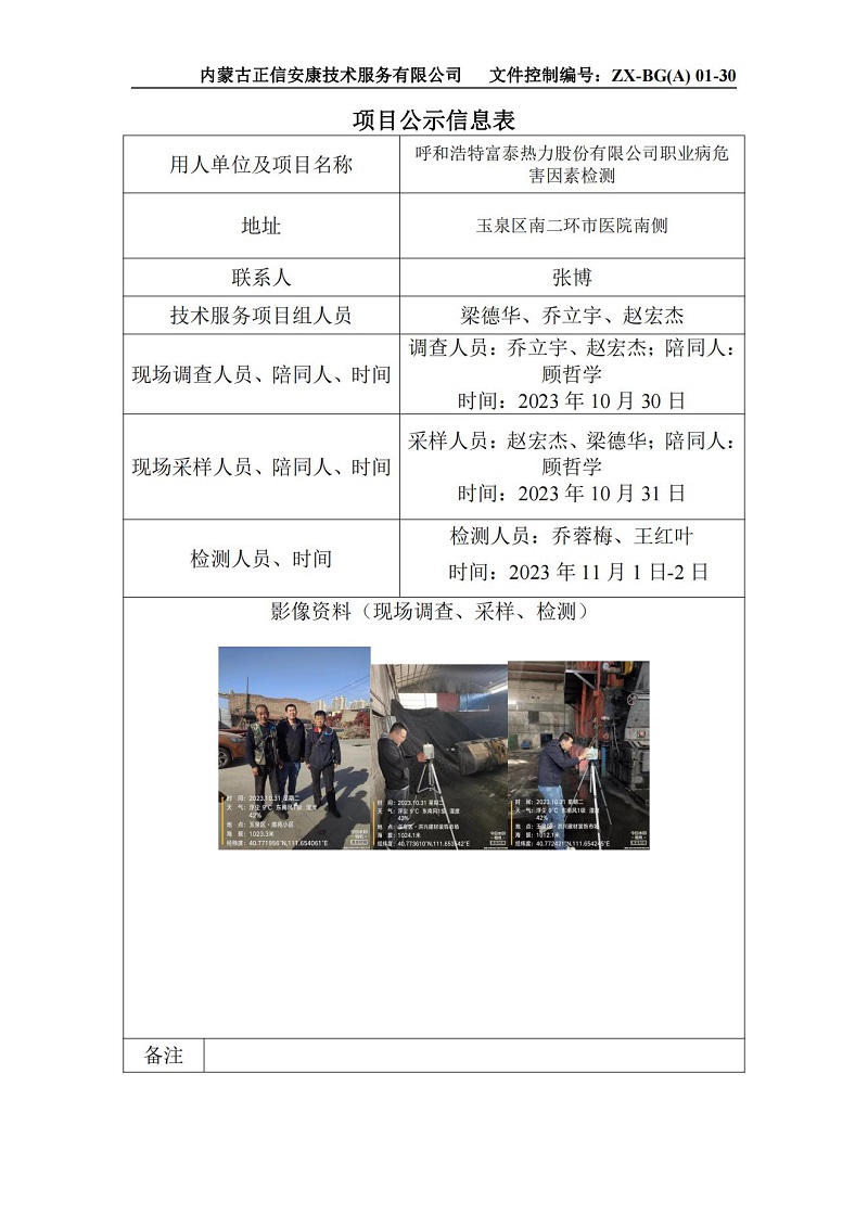 呼和浩特富泰熱力股份有限公司職業(yè)病危害因素檢測項目公示信息表(1)_