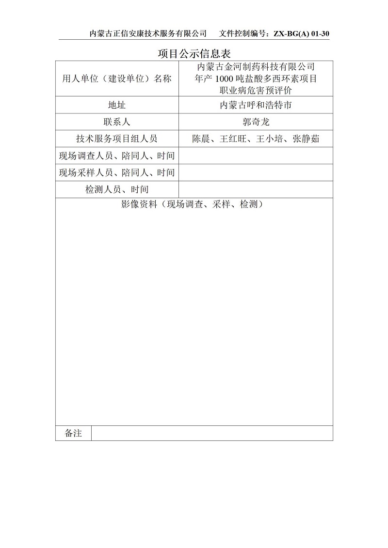 金河制藥1000噸鹽酸多西環(huán)素(預(yù)評)項(xiàng)目公示信息表