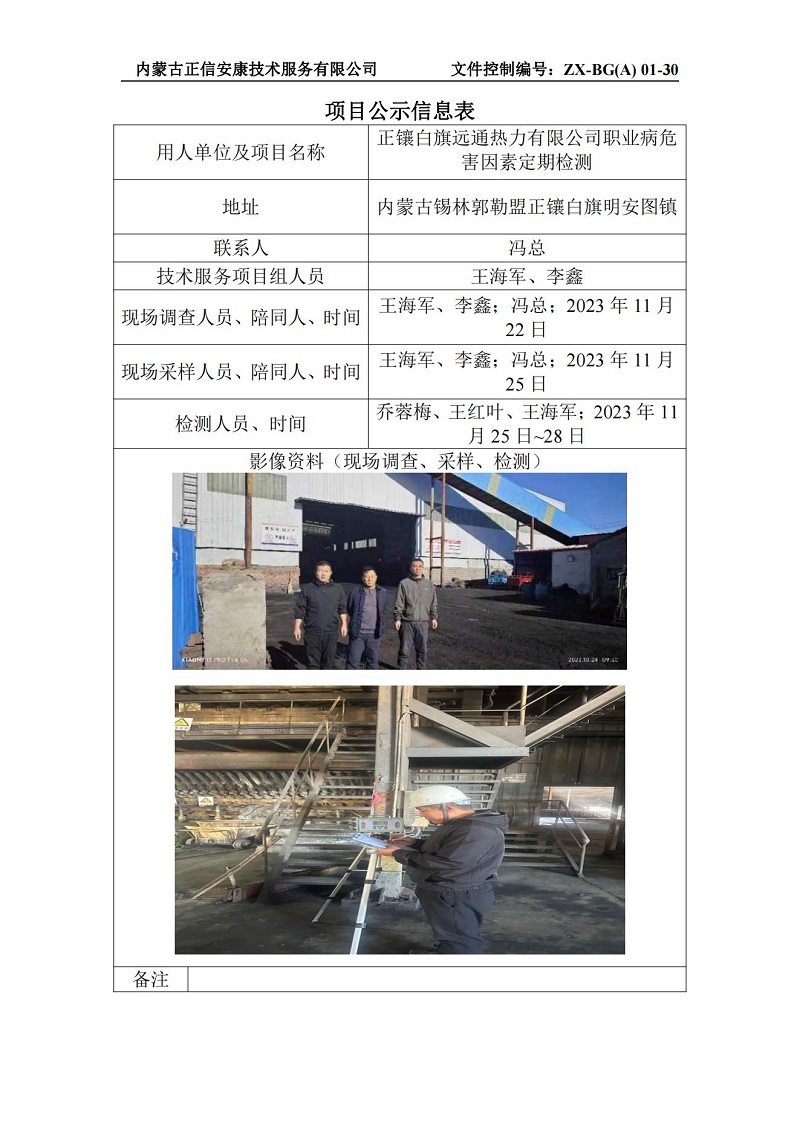 正鑲白旗遠(yuǎn)通熱力有限公司職業(yè)病危害因素定期檢測(cè)