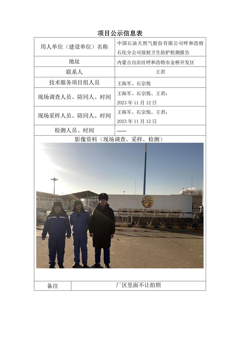 中國石油天然氣股份有限公司呼和浩特石化分公司放射衛(wèi)生防護(hù)檢測報告