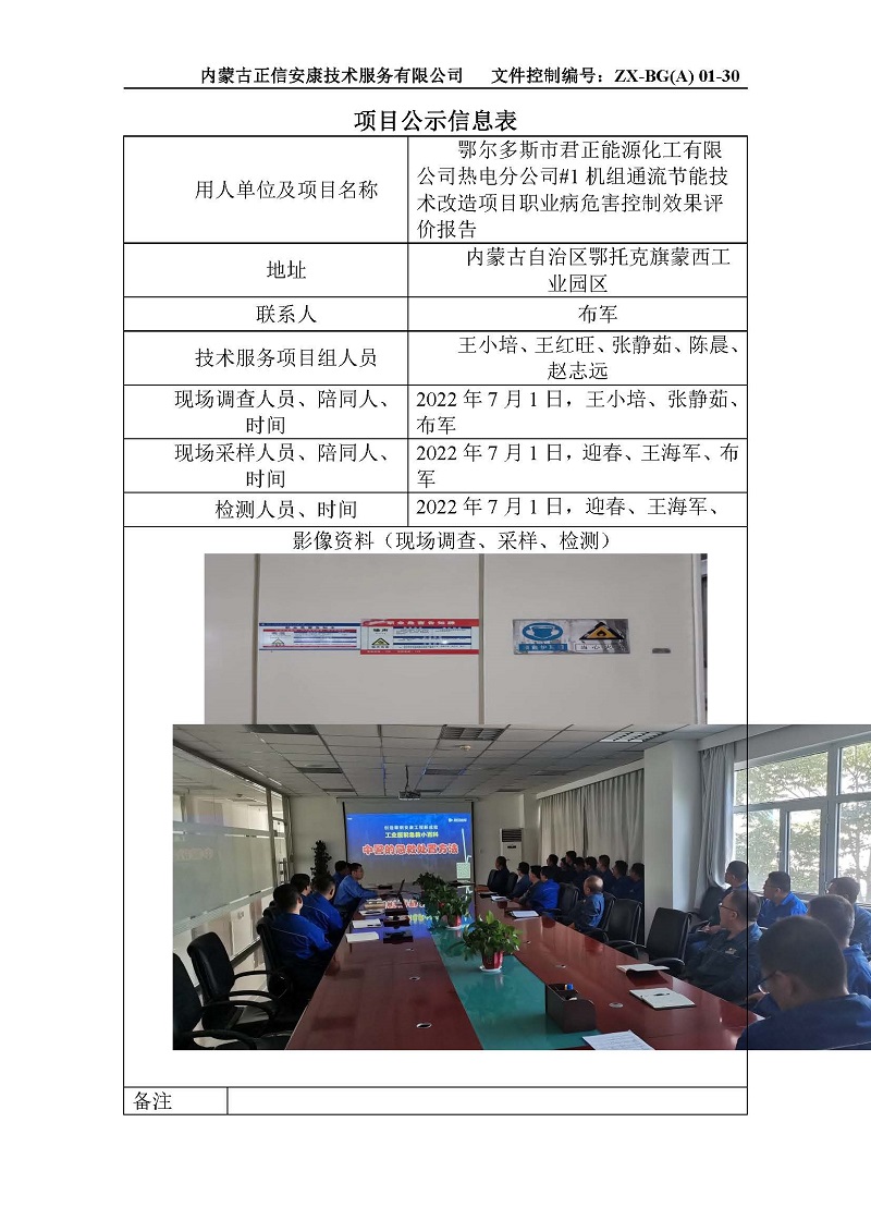 鄂爾多斯市君正能源化工有限公司熱電分公司#1機組通流節(jié)能技術(shù)改造項目公示信息表
