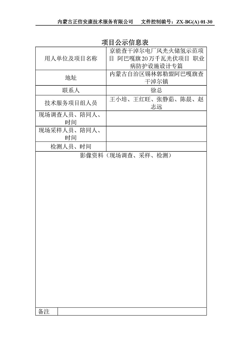 京能查干淖爾電廠風光火儲氫示范項目 阿巴嘎旗20萬千瓦光伏項目 職業(yè)病防護設(shè)施設(shè)計專篇公示信息表