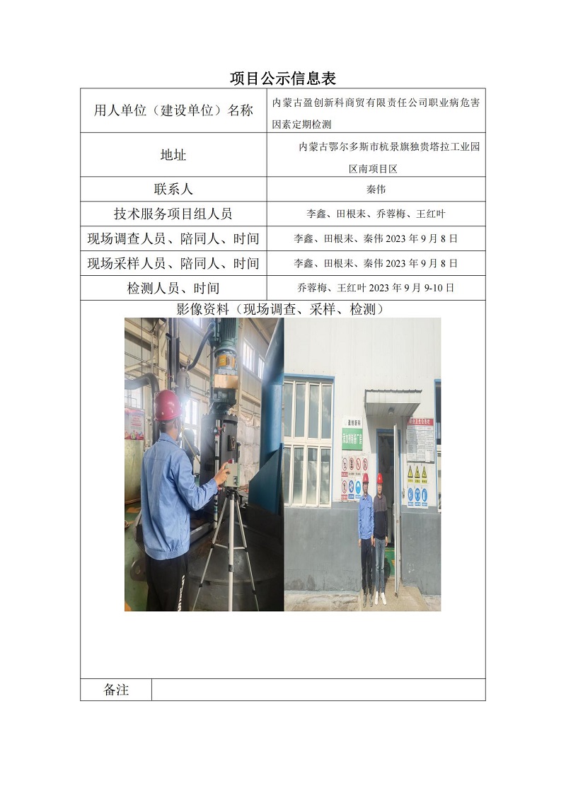 內(nèi)蒙古盈創(chuàng)新科商貿(mào)有限責(zé)任公司定期檢測(cè)
