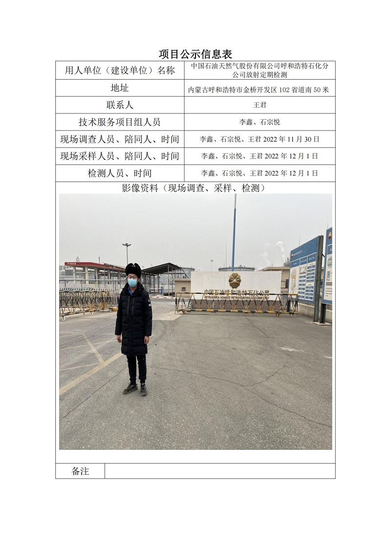 中國石油天然氣股份有限公司呼和浩特石化分公司放射定期檢測信息公示