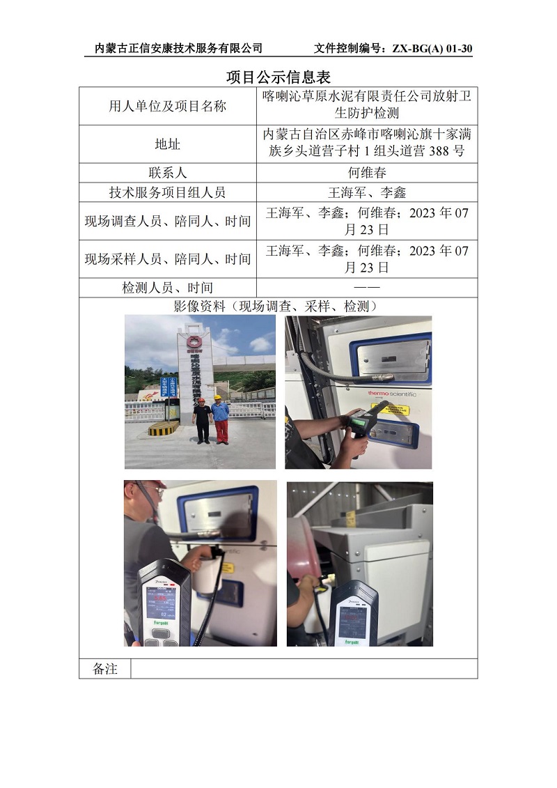 喀喇沁草原水泥有限責任公司放射衛(wèi)生防護檢測_