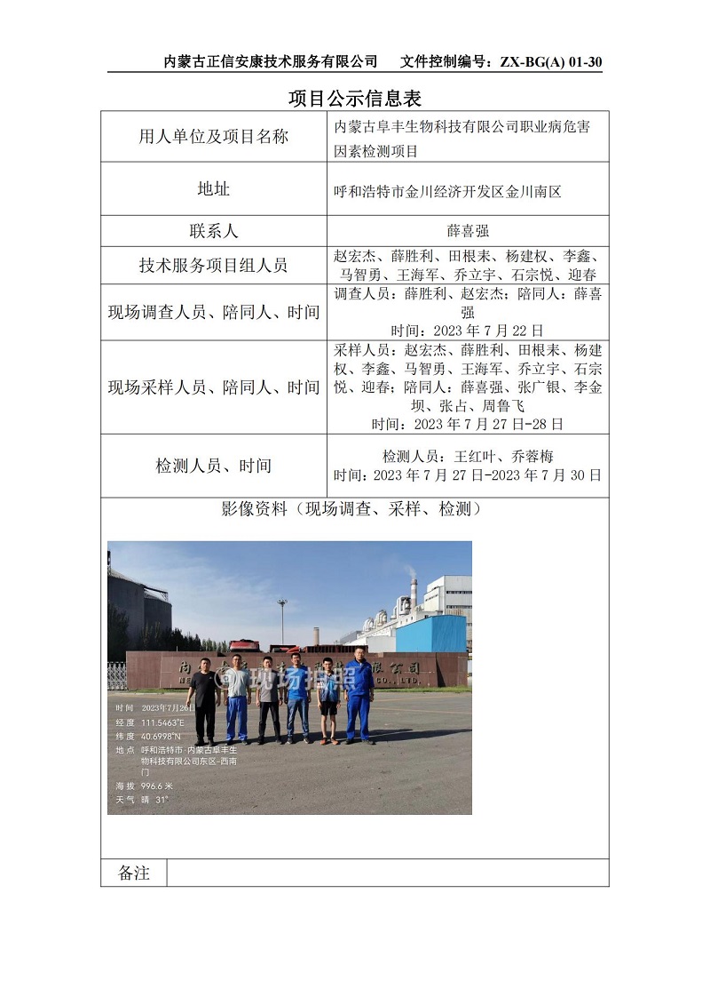 內(nèi)蒙古阜豐生物科技有限公司項目公示信息表