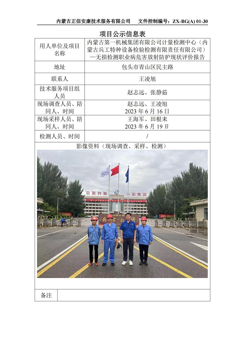 內(nèi)蒙古第一機(jī)械集團(tuán)有限公司計(jì)量檢測(cè)中心(內(nèi)蒙古兵工特種設(shè)備檢驗(yàn)檢測(cè)有限責(zé)任有限公司)—無損檢測(cè)間職業(yè)病危害放射防護(hù)現(xiàn)狀評(píng)價(jià)報(bào)告-項(xiàng)目公示信息表