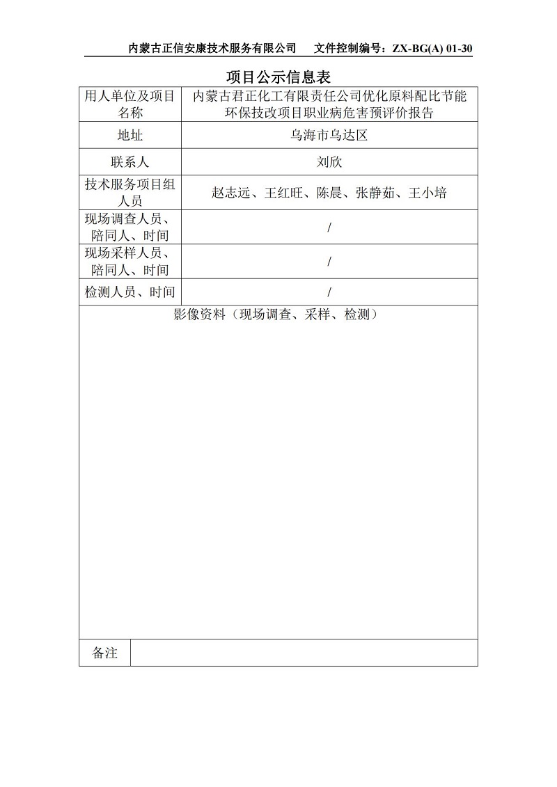 內(nèi)蒙古君正化工有限責(zé)任公司配套原料碳化鈣產(chǎn)能置換技術(shù)升級改造項(xiàng)目職業(yè)病危害預(yù)評價報告-項(xiàng)目公示信息表_00