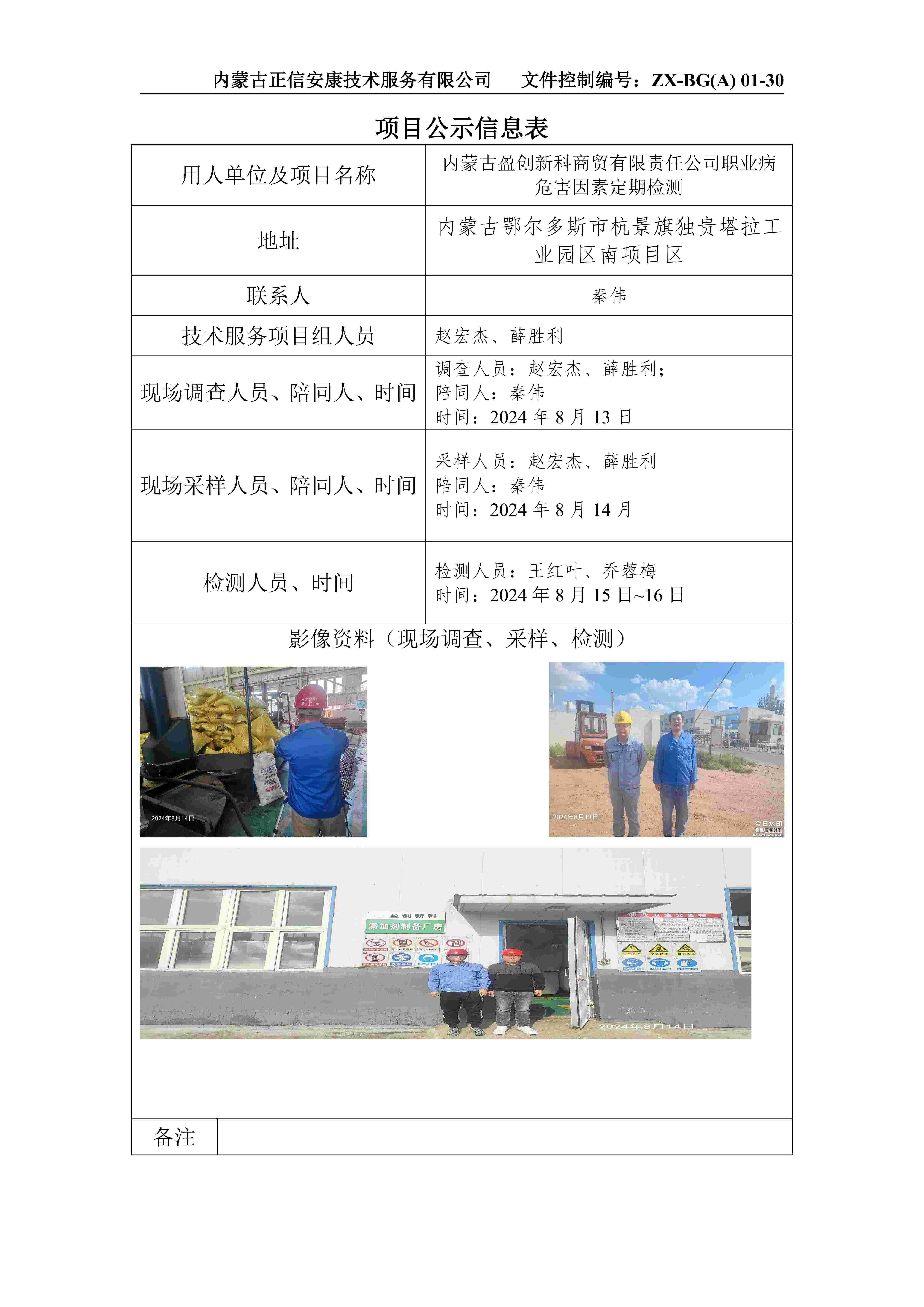 內(nèi)蒙古盈創(chuàng)新科商貿(mào)有限責(zé)任公司職業(yè)病 危害因素定期檢測