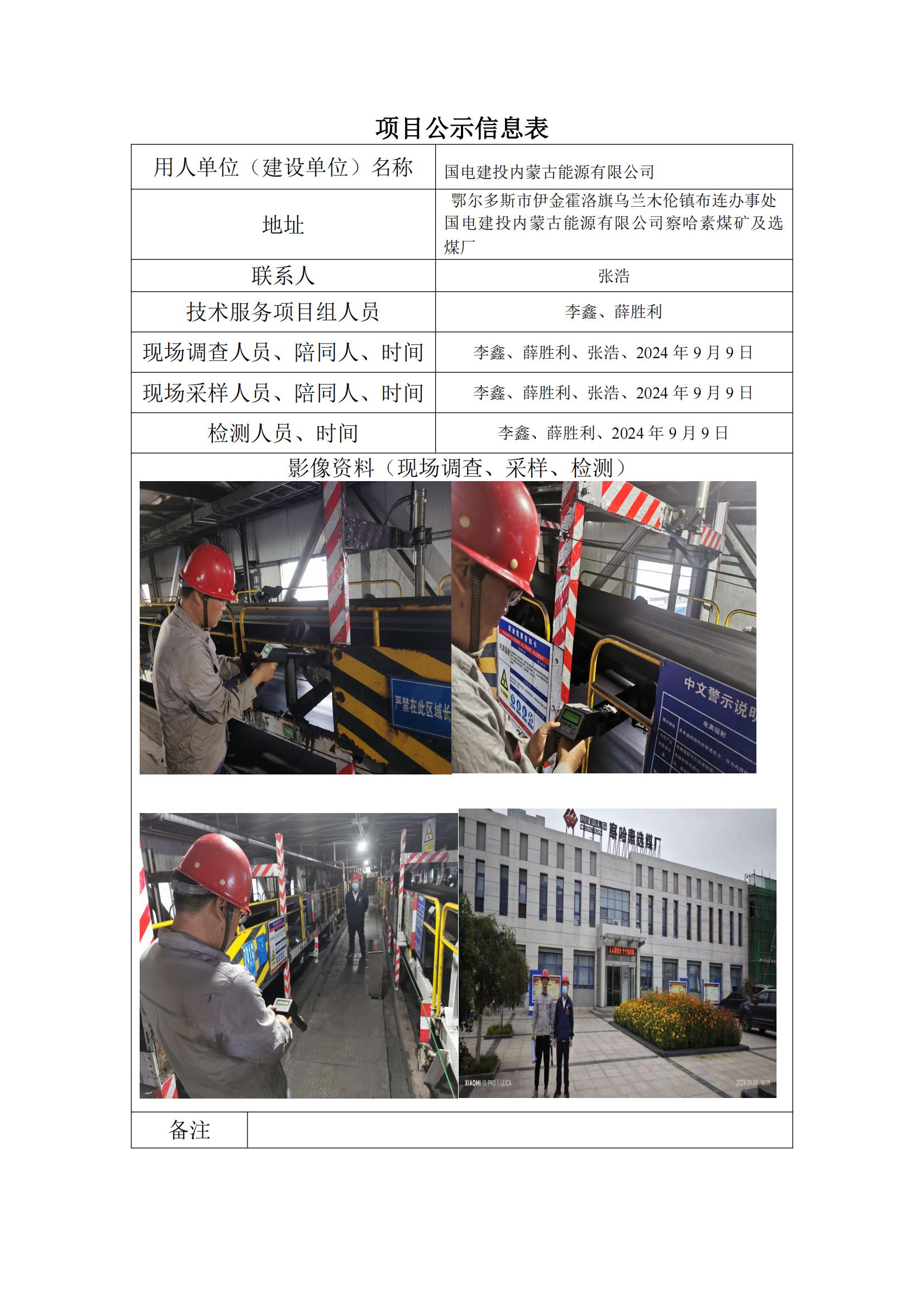 國電建投內(nèi)蒙古能源有限公司察哈素煤礦及洗煤廠放射衛(wèi)生防護檢測
