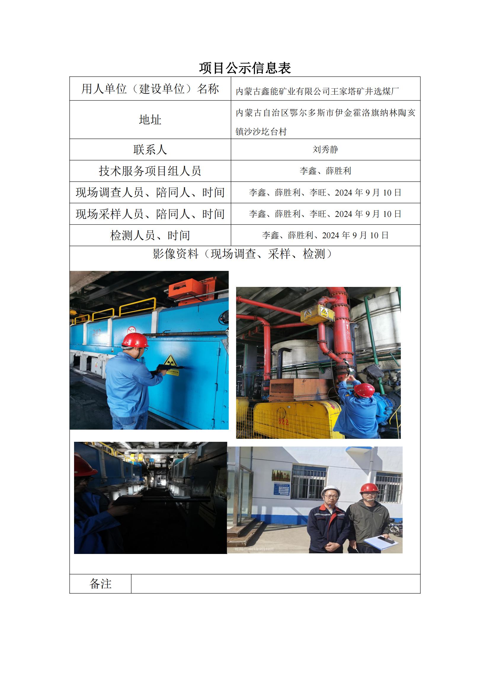 內(nèi)蒙古鑫能礦業(yè)有限公司王家塔礦井選煤廠放射衛(wèi)生防護(hù)檢測(cè)