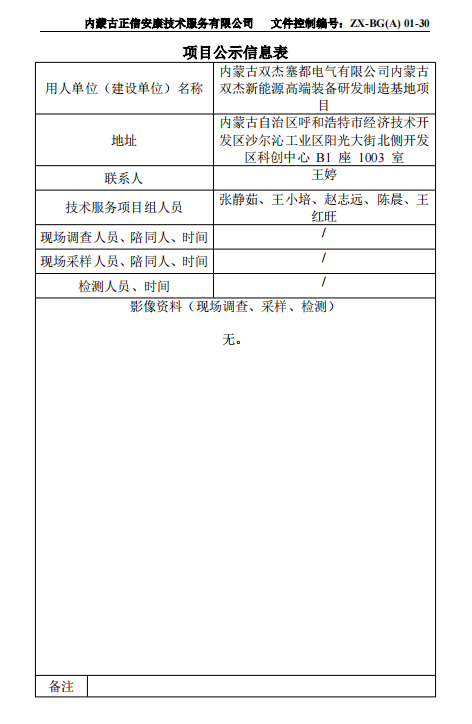 內(nèi)蒙古雙杰塞都電氣有限公司內(nèi)蒙古雙杰新能源高端 裝備研發(fā)制造基地項(xiàng)目職業(yè)病危害預(yù)評(píng)價(jià)