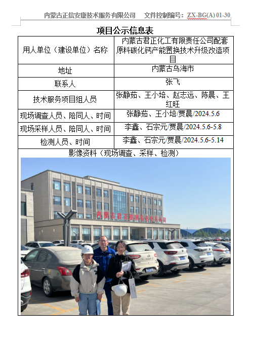 內(nèi)蒙古君正化工有限責任公司配套原料碳化鈣產(chǎn)能置換技術升級改造項目職業(yè)病危害控制效果評價