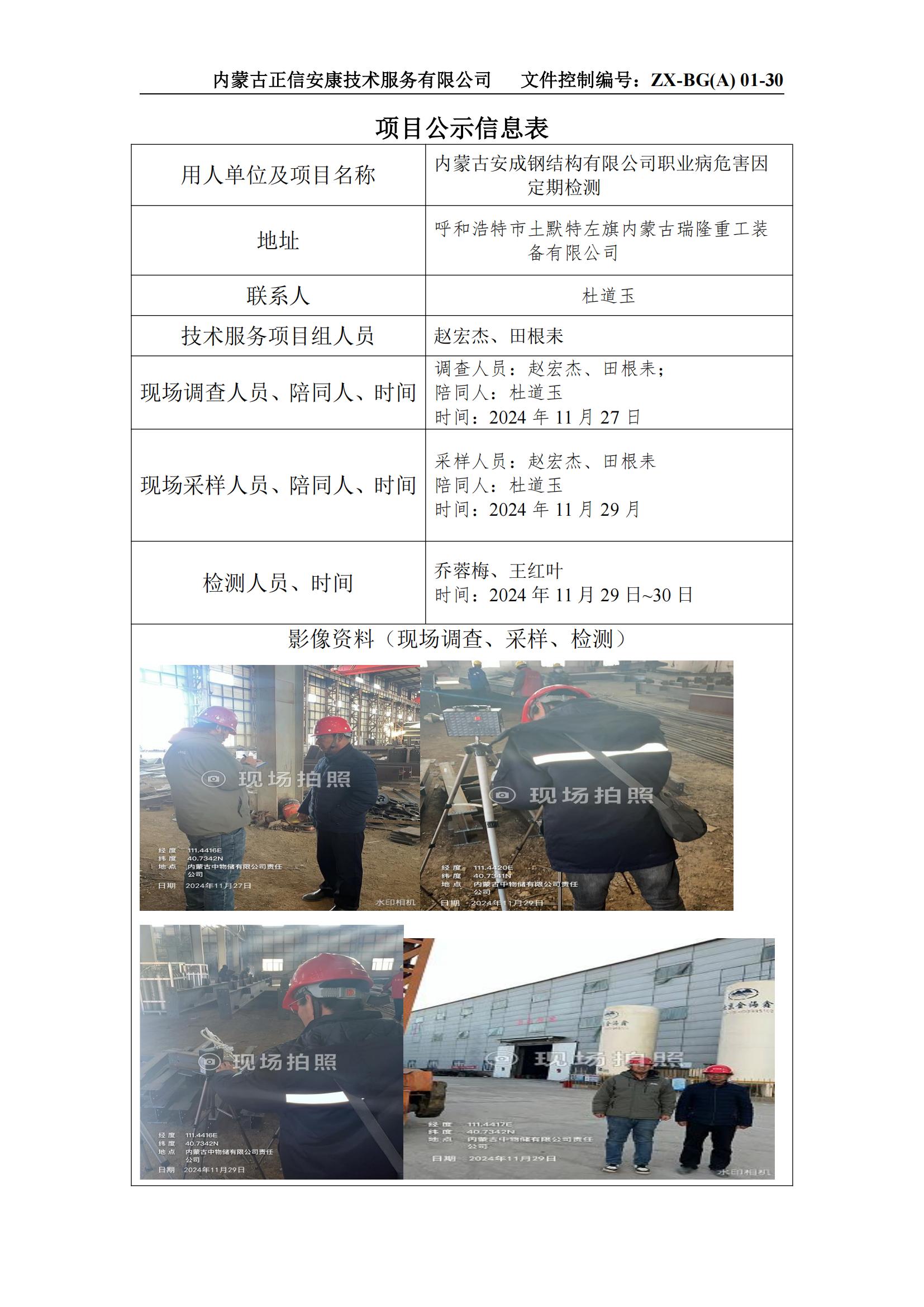 內蒙古安成鋼結構有限公司職業(yè)病危害因定期檢測