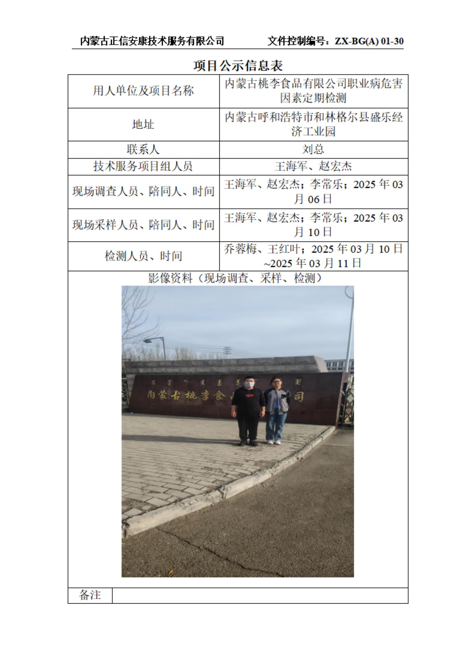 內(nèi)蒙古桃李食品有限公司職業(yè)病危害因素定期檢測