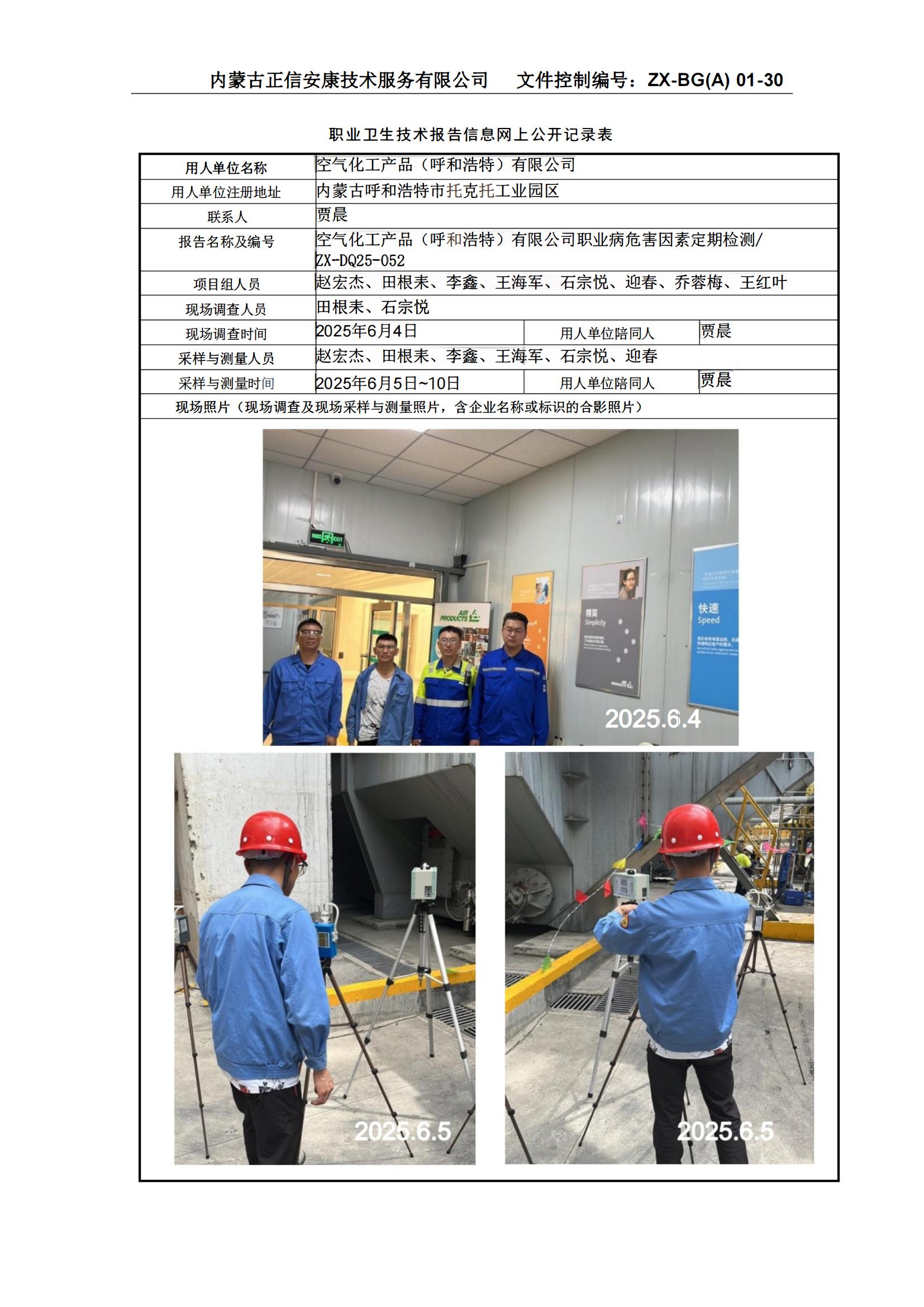 空氣化工產(chǎn)品(呼和浩特)有限公司職業(yè)病危害因素定期檢測(cè)