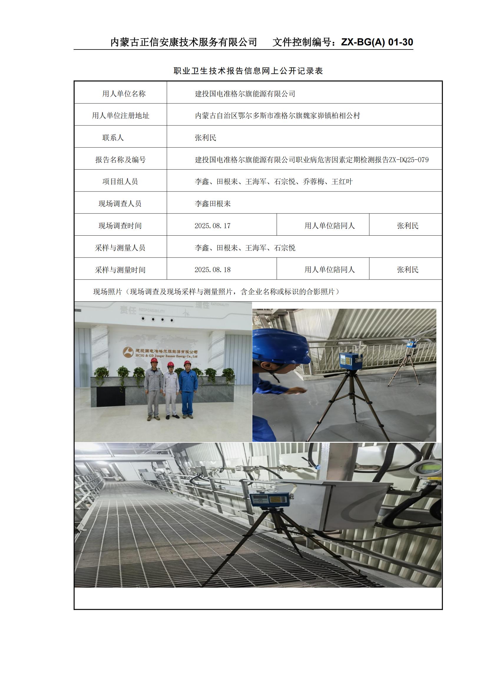 建投國(guó)電準(zhǔn)格爾旗能源有限公司職業(yè)病危害因素定期檢測(cè)