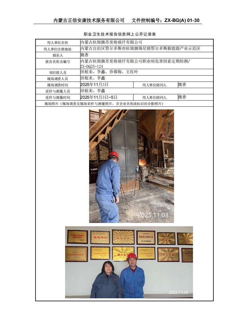 內蒙古杭錦旗蘇里格玻纖有限公司職業(yè)病危害因素定期檢測