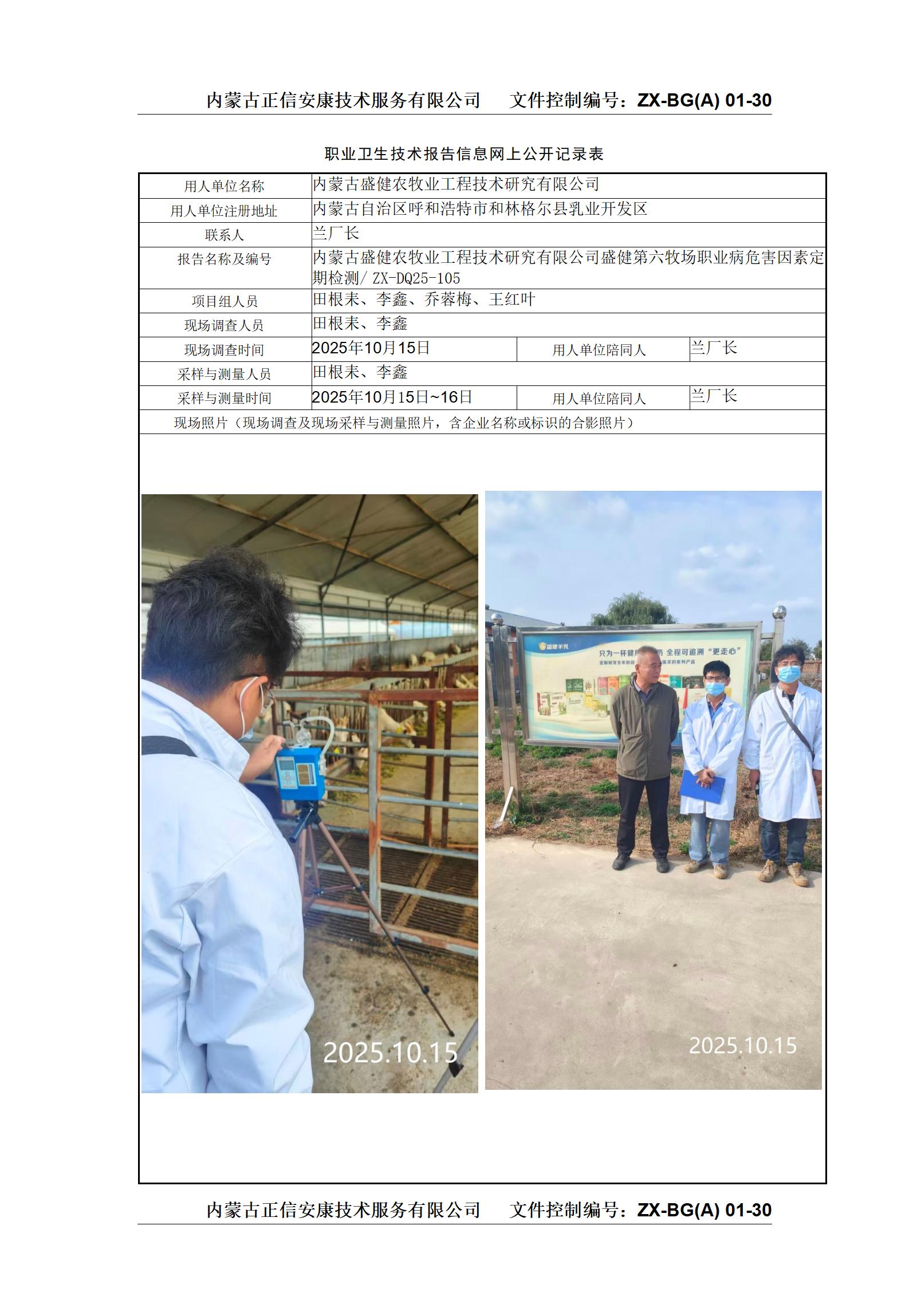 內(nèi)蒙古盛健農(nóng)牧業(yè)工程技術(shù)研究有限公司盛健第六牧場(chǎng)職業(yè)病危害因素定期檢測(cè)