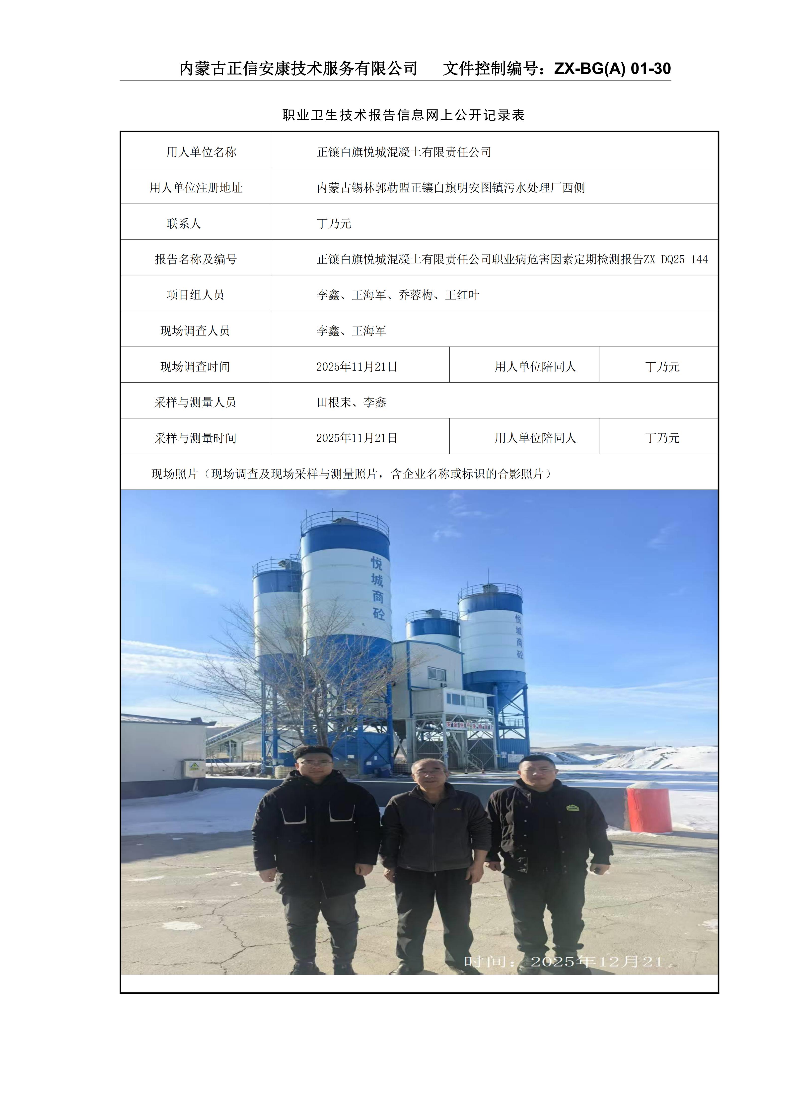 正鑲白旗悅城混凝土有限責任公司職業(yè)病危害因素定期檢測報告